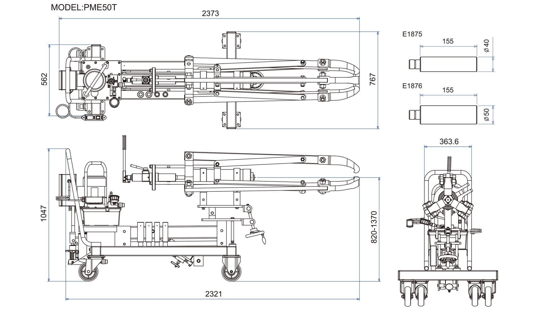 Thông số kỹ thuật của cảo thủy lực PME50TE.